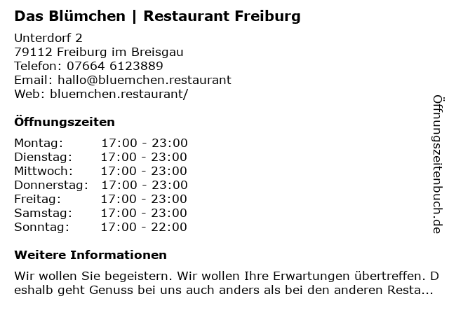 öffnungszeiten von gasthaus blume in freiburg im breisgau öffnungszeiten telefonnummer kontaktdaten anfahrt bewertungen. Willkommen im blümchen der kleinen schwester vom gasthaus blume. Gasthaus blume unterdorf 2 in freiburg im breisgau opfingen telefon 07664 6123889 mit öffnungszeiten bewertungen und speisekarte.
