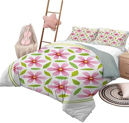 Daydayfun Quilt Bettwasche Set Blumen 3 Stuck Tagesdecken Bettdecke Blume Des Lebens Mit Blutchen Und Blattern Im Kreis Cosmos Beauty Image King Size Hellrosa Farn Grun Amazon De Kuche Haushalt