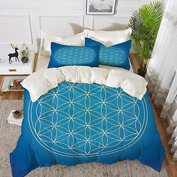 Blau Bettwasche Set Blume Des Lebens Kunst Ebay